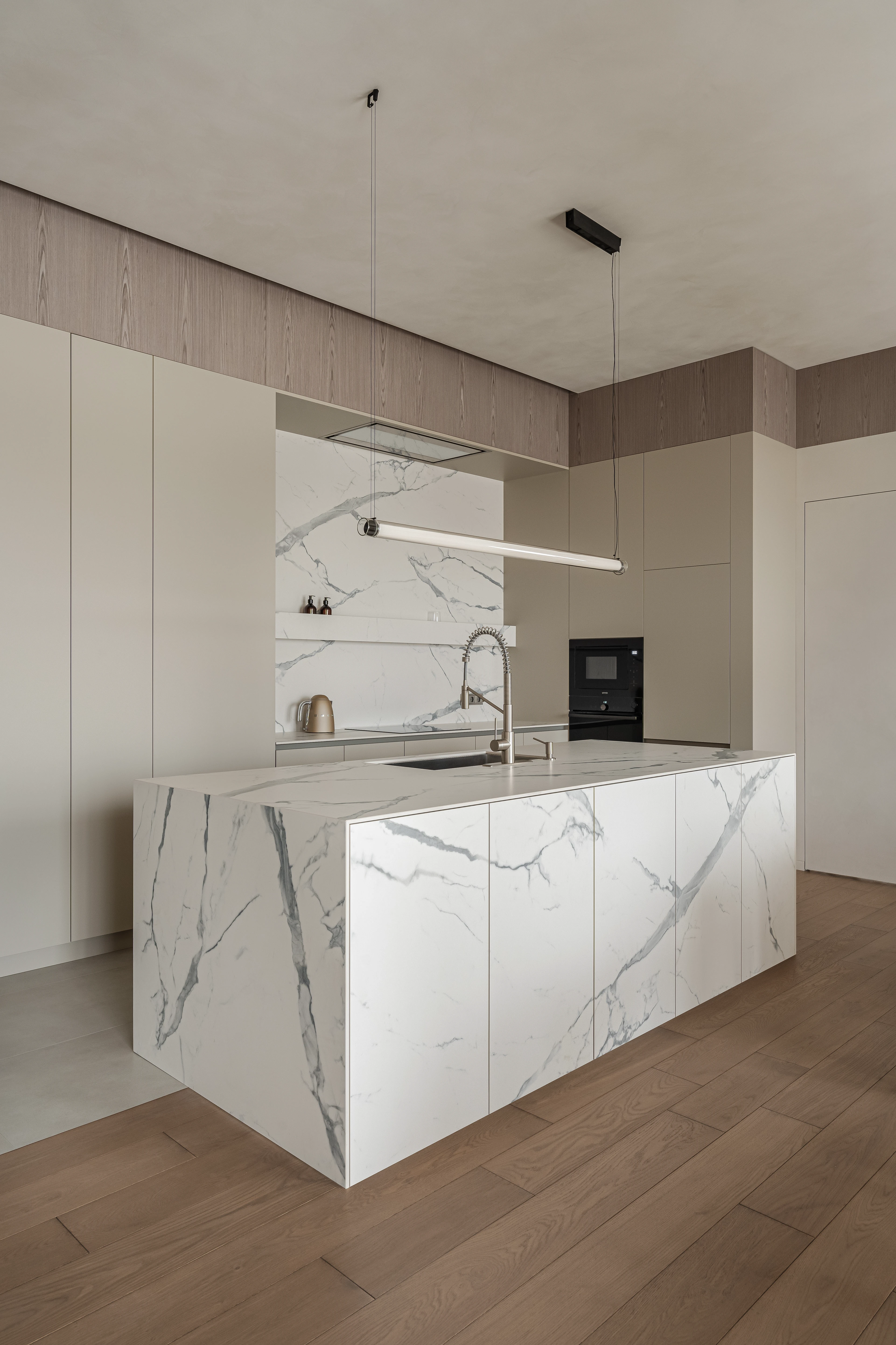 岛台岩板的选购首要前提是适配自家户型、装修风格与使用场景,不同空间尺寸、使用需求对应的岩板规格、花色、厚度差异较大,提前确认适配条件,能避免出现“装不上”“用着不顺手”“与装修风格脱节”的问题,这是选购的基础步骤。